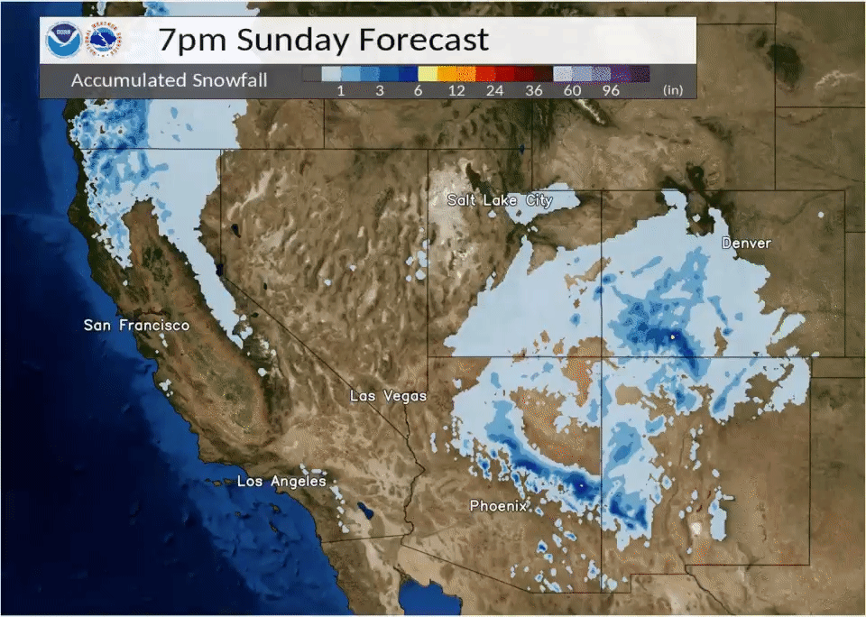 Above: After the wildfires, le deluge. Or to be more precise, the National Weather Service/San Francisco Bay Area is warning of what it calls an “atmospheric river event” from Tuesday into Thursday. This heralds a river of storms across the nation, with winter weather alerts in effect for 60 million people across 23 states from Pacific to Atlantic.