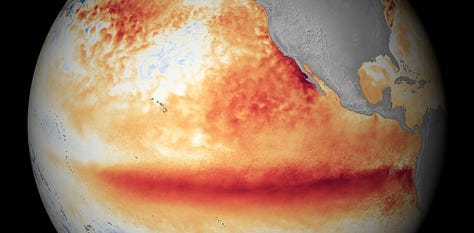 . . . . Forecasters and climate models are signaling a powerful “super” El Niño could develop later this year. USA Today reports a super El Niño — also referred to as a “Jurassic El Niño” by Colorado State University hurricane expert Phil Klotzbach — refers to unusually strong warming of sea surface temperatures across the central and eastern equatorial Pacific Ocean. That warming can disrupt global weather patterns, shifting storm tracks, rainfall and temperatures for months at a time. Multiple long-range models are trending warmer, with some pushing into territory rarely seen in modern records.