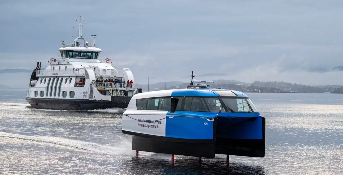 . . . . Candela says one of its P-12 electric ferries completed what it claims is the longest journey yet — a three-day, 160-nautical mile excursion from Gothenburg on Sweden’s West Coast to Oslo, Norway. Rather than rely on costly, permanent charging stations set up in strategic locations, Candela, a Swedish electric boat designer, relied in part on a portable charging station towed behind a Ford F-150 Lightning electric pickup truck, which it said cost less than €200 ($236).
