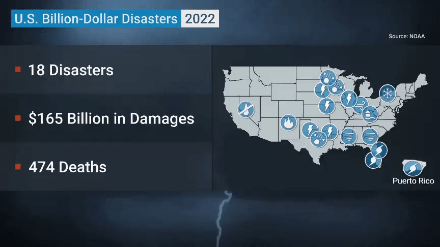 . . . . Extreme weather disasters fueled by climate change killed at least 474 people and caused more than $165 billion in damages across the U.S. in 2022, NOAA scientists said Tuesday. Meanwhile, the death toll in the California floods and storms is still climbing. Yes, global warming has become very costly, both in terms of lives and money. And now a majority of people want something to be done. Read more here. . . .