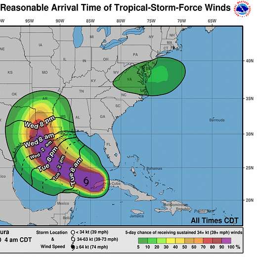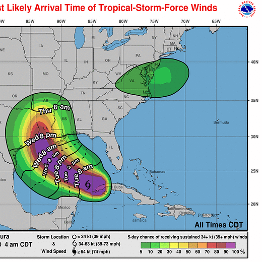 But attention spans are fickle, and for those not coughing and cleaning ash from their cars, the big story today is that of Marco and Laura. Just as we’re getting used to more hurricanes, nature throws two at one time at the Gulf Coast. Fortunately, Marco petered out, but Laura remains a threat. As people hunker down, insurers are redoing risk models. We talk with the chief climate scientist at Munich Re, below, about mitigation, adaptation, and whether insurance will someday become impossible based on costs and how fast things are moving.