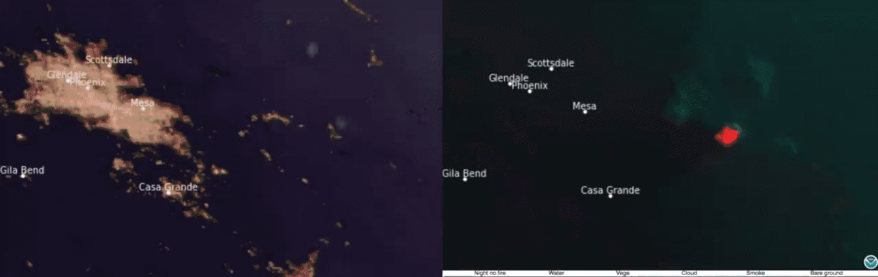. . . . As of June 15, the Fire Information for Resource Management System reported five new large incidents in the U.S. and Canada, two large fires contained, and 20 large fires uncontained. In the southwest, eight new fires were reported, and there were nine large fires uncontained. The Telegraph and Mescal fires east of Phoenix, seen in the satellite imagery above, are still burning. For the Telegraph fire, officials say its fire behavior is “extreme,” numerous structures are threatened, and evacuations, area, road and trail closures are in effect. Across the nation, the National Interagency Coordination Center reports as of Wednesday morning, more than 345,500 acres had burned. . . .